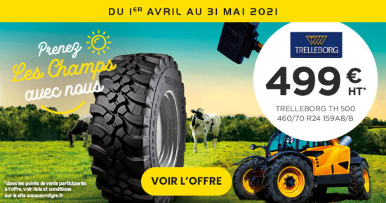 Du 1er Avril au 31 Mai 2021, profitez du pneu Trelleborg TH 500 460/70 R24 159A8/B à seulement 499€ HT* […]